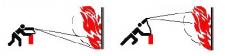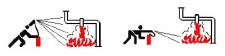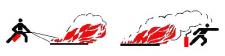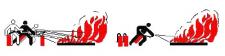 Bei größeren Bränden möglichst mehrere Feuerlöscher gleichzeitig einsetzen, nicht nacheinander. |